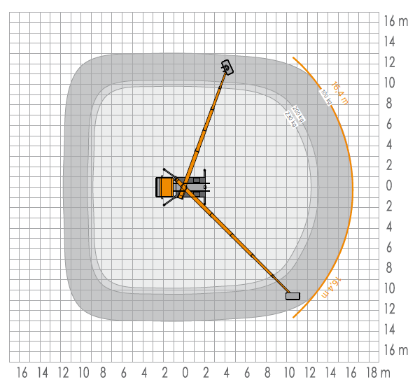 - Eine seitliche Reichweite von 14,8 m bringt Sie zu den optimalen Arbeitsergebnissen