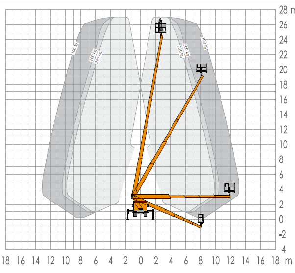- Mit einer vollen Korblast von 230 kg, erreichen Sie eine Arbeitshöhe von 27 m