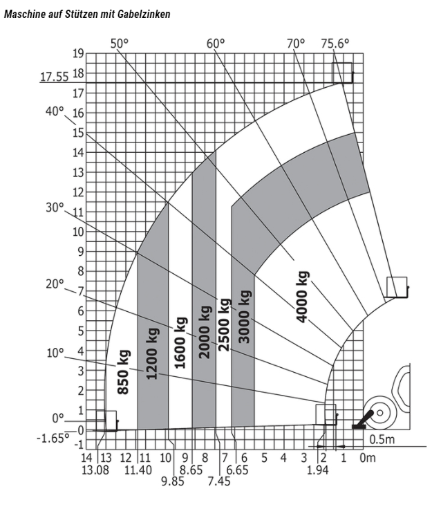 - Lasten können in völliger Sicherheit bis auf 18 m Höhe gehoben werden